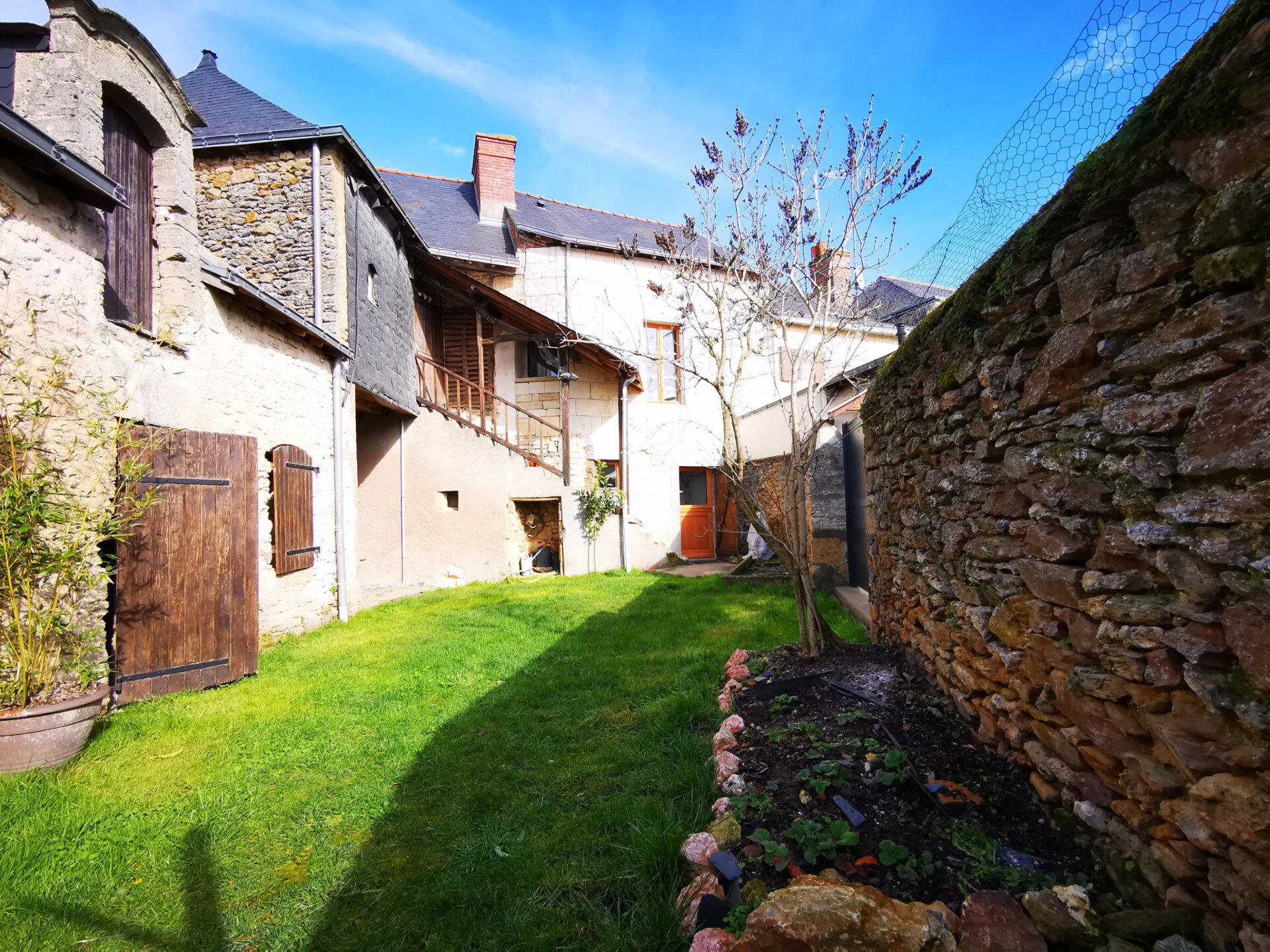 A vendre maison de village dans le bourg de Chavagnes, proche des services de proximités (scolaires, alimentaires, médicales, sportifs, loisirs…). Maison de 112m2 où vous trouverez une entrée donnant sur un salon/séjour lumineux, qui communique sur léspace cuisine, aménagée, équipée avec accès et vue sur léxtérieur. Le 1er étage comprend une mezzanine desservant la salle déau (double vasques, douche à l?italienne), le coin nuit comprenant un espace bureau, une chambre avec balcon et une seconde chambre. Au deuxième étage, vous trouverez des combles aménageables, environ 40m2 de surface habitable (en partie isolé et électricité déjà présente). Jardin arboré, clos, au calme, vous invite à la relaxation de par son exposition plein Sud et sa terrasse. A cela s?ajoute, une grande possibilité déxtension sur la propriété existante avec l?une des dépendances, 80m2 de surface habitable en plus. Cette maison de famille présente un cachet indéniable, charme de l?ancien (les vieilles pierres et les poutres apparentes ont été préservées), pour les amoureux de l?authenticité, une visite vous séduira !