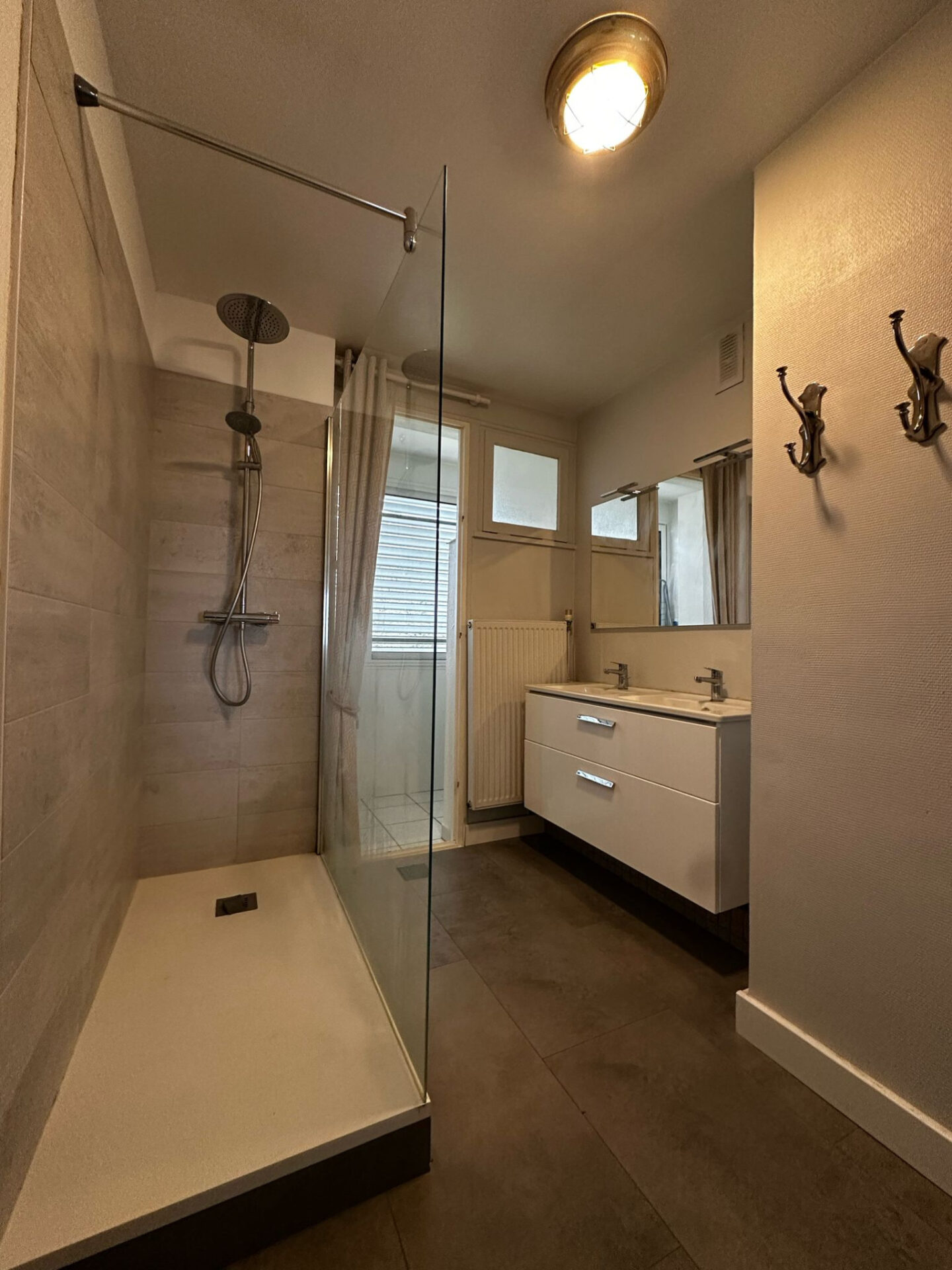 D’une surface de 63 m2, il est composé d’une cuisine séparée aménagée et équipée. Vous trouverez un salon spacieux, lumineux offrant un cadre de vie agréable accompagné de son balcon. De plus une salle d’eau au volume généreux avec sa douche à l’italienne, son double vasque, sa loggia et ses divers rangements. L’espace nuit dispose de 2 chambres lumineuses et un dressing optimisé. L’appartement possède également une cave en sous-sol d’une surface d’environ 10m2.