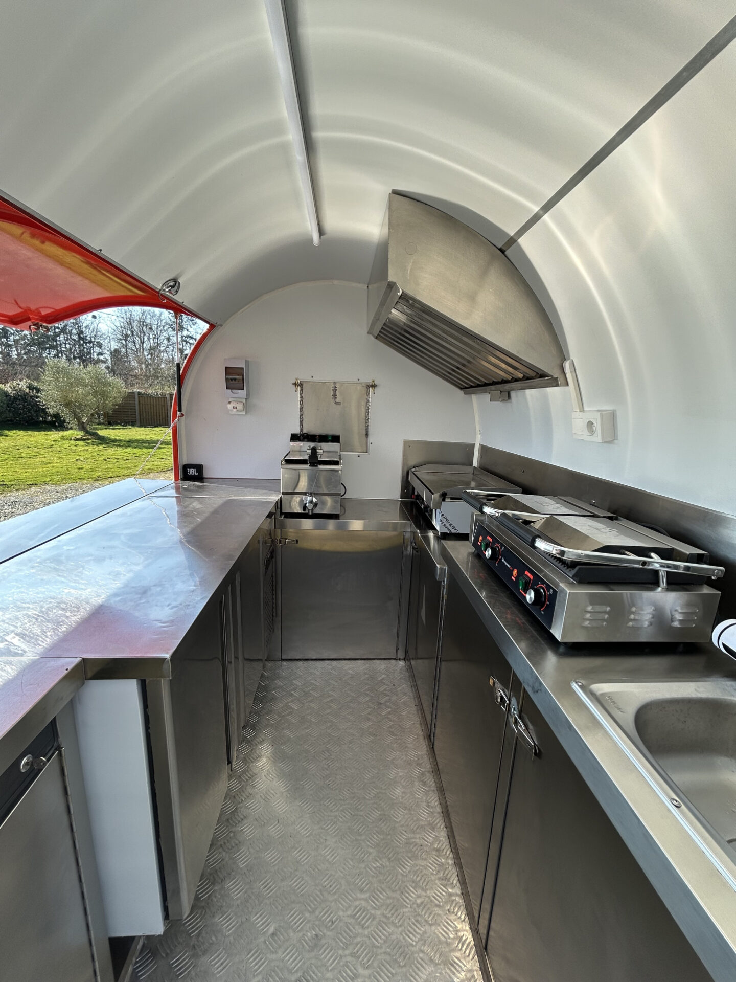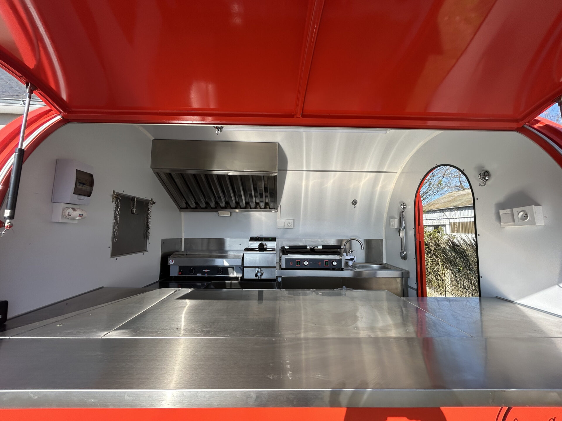 Location Food Truck Prêt à l’emlpoi – Etat quasi neuf Design Rétro – Compacte et très fonctionnel avec poste de travail pour 2/3 personnes.