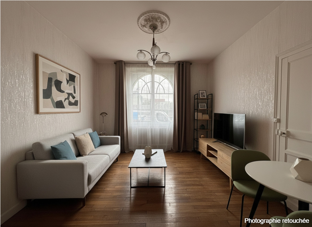 À noter : certaines photos ont été retouchées à des fins de projection. Le mobilier visible sur les visuels a été modifié numériquement pour illustrer un potentiel d’aménagement. Les sols et les murs sont quant à eux conformes à la réalité et identiques à ceux visibles sur les photos.