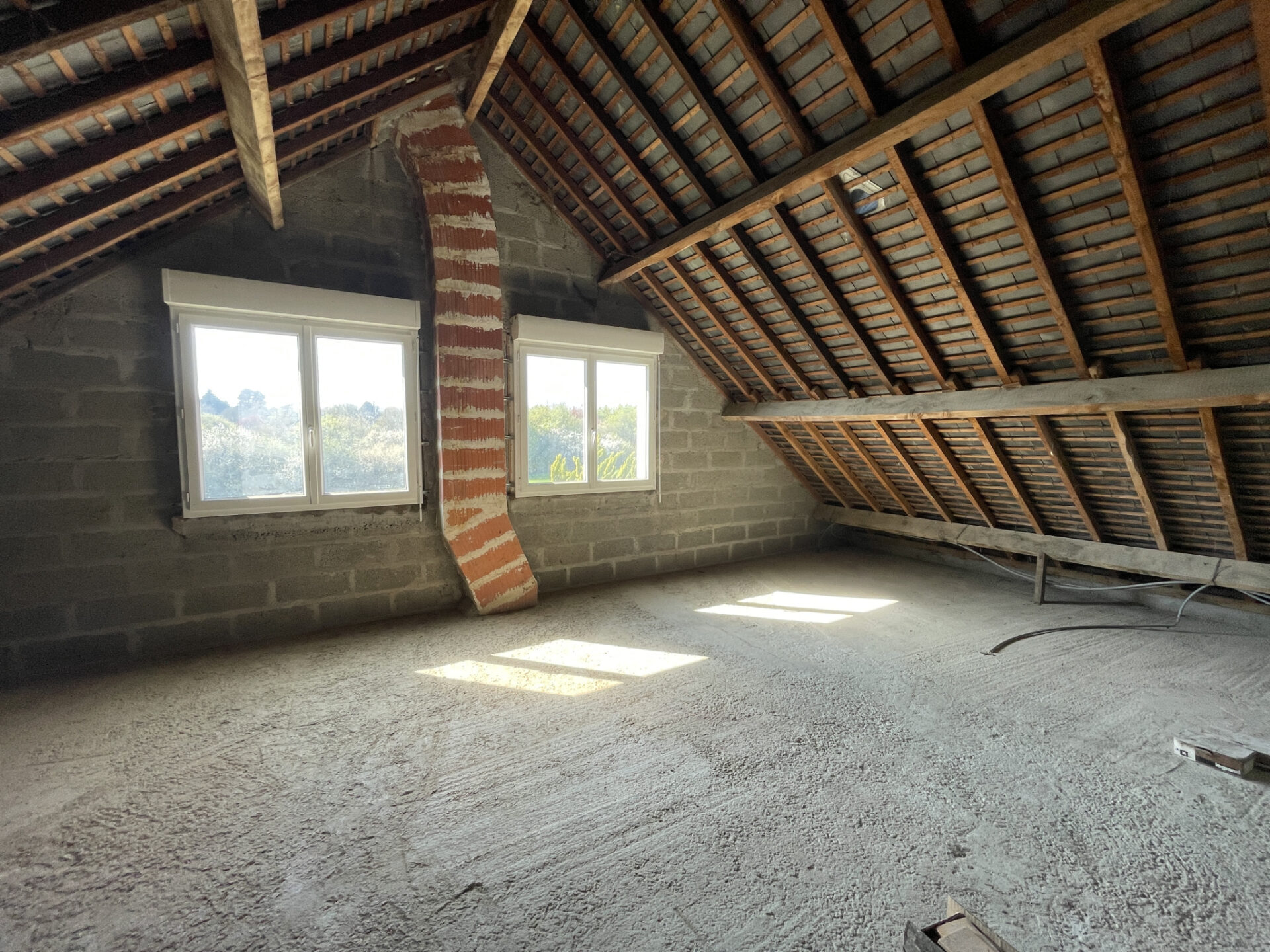 Étage : Un palier qui dessert 1 chambre, et un espace de 28 m2 à aménager en suite parentale, ainsi qu’une salle d’eau possible.