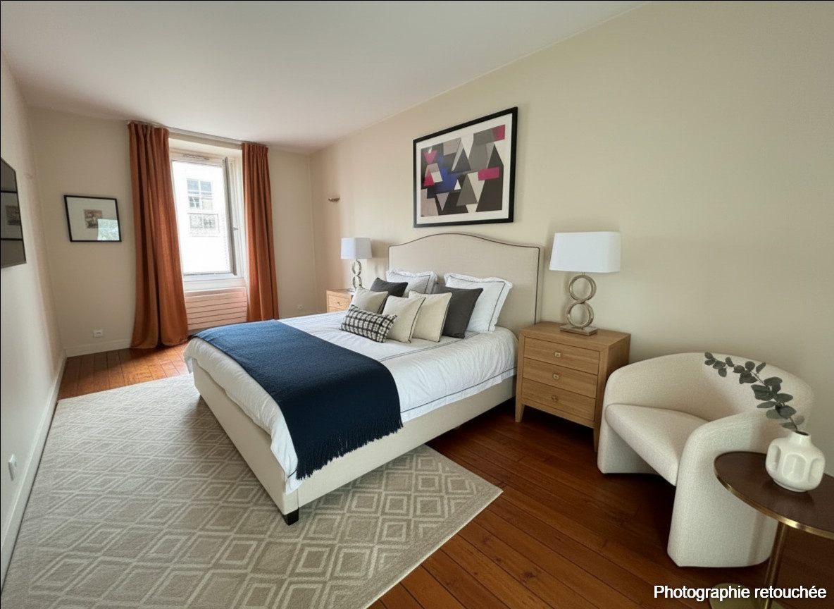 – 1er étage : Trois belles chambres, idéales pour une famille, accompagnées d’une salle de douche et de WC.