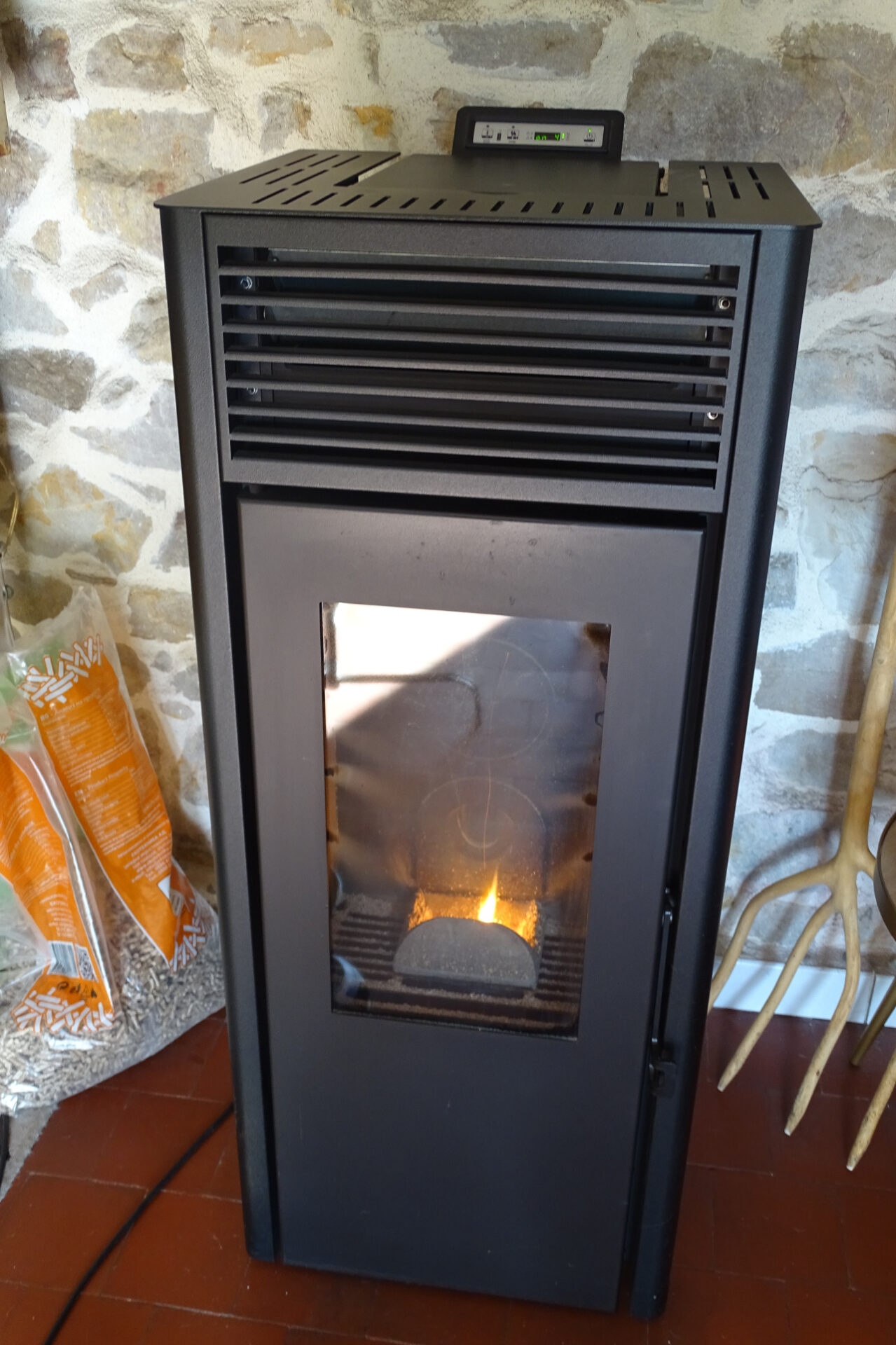 Au niveau du mode de chauffage, vous êtes au fioul avec un poêle à pellets en complément. Les menuiseries sont en PVC et double vitrage.