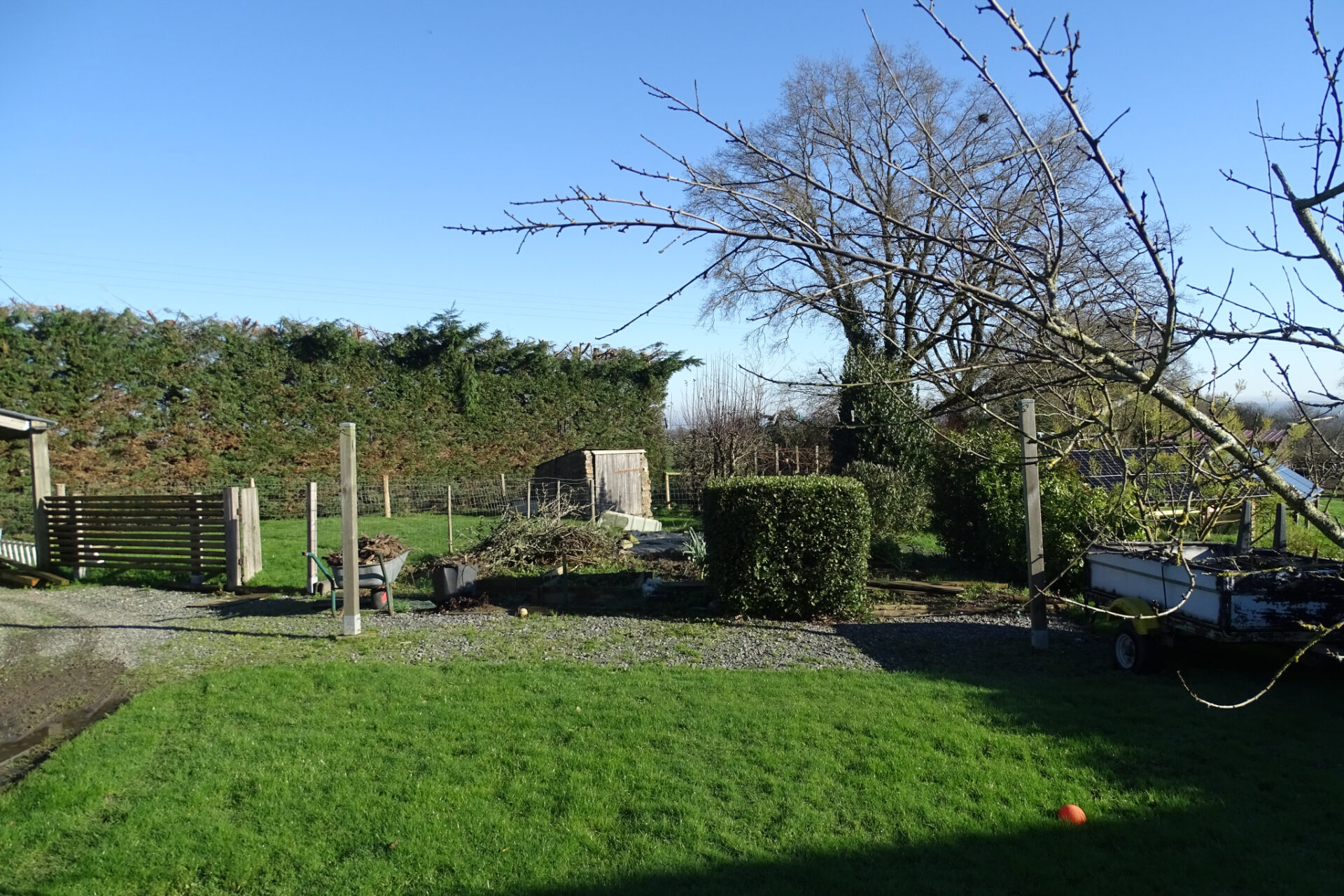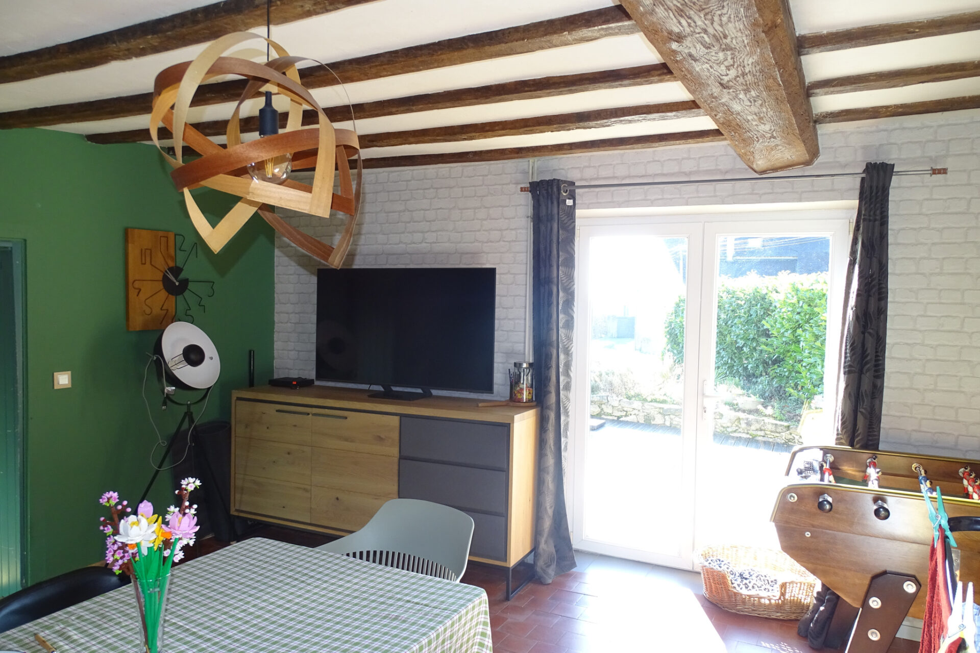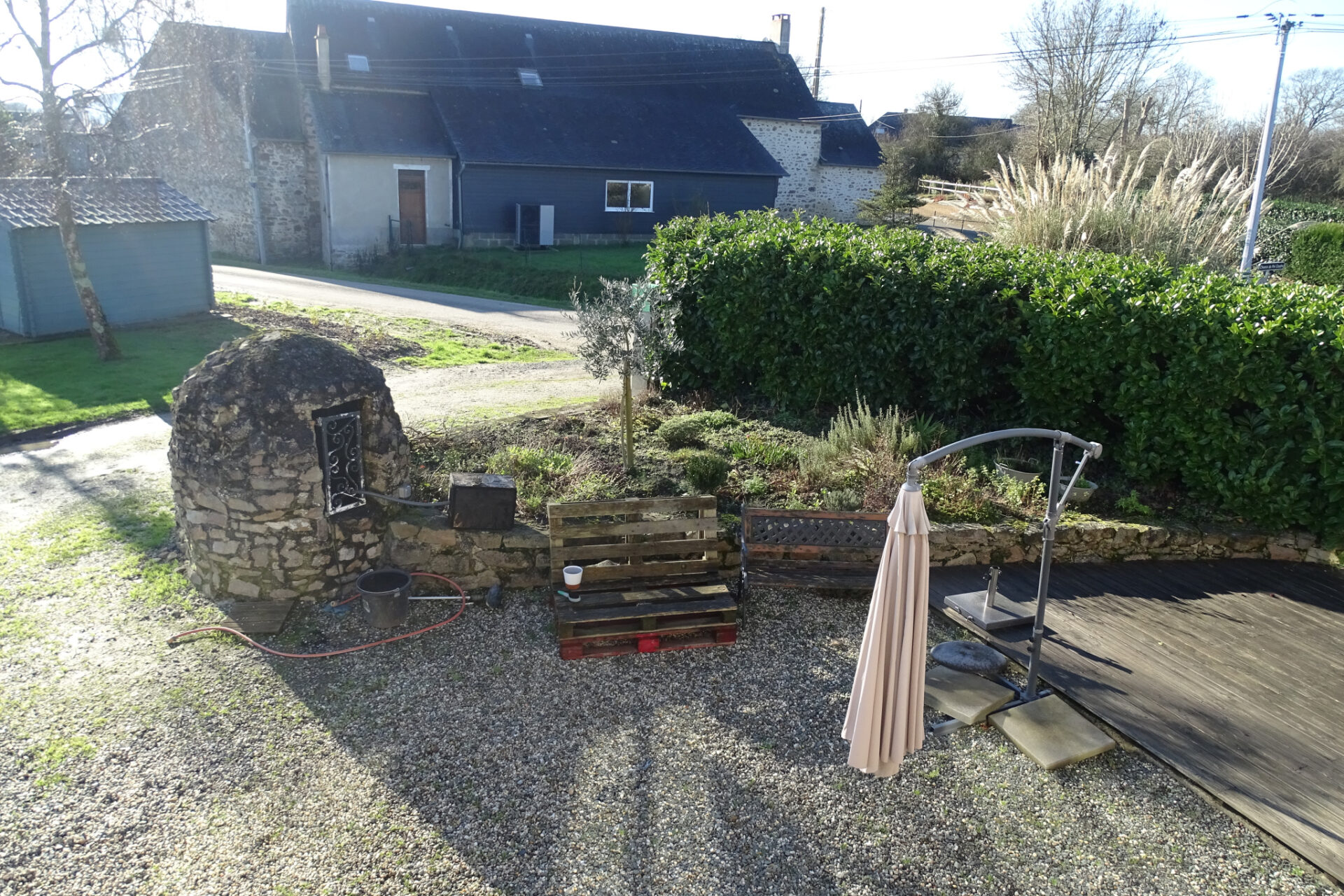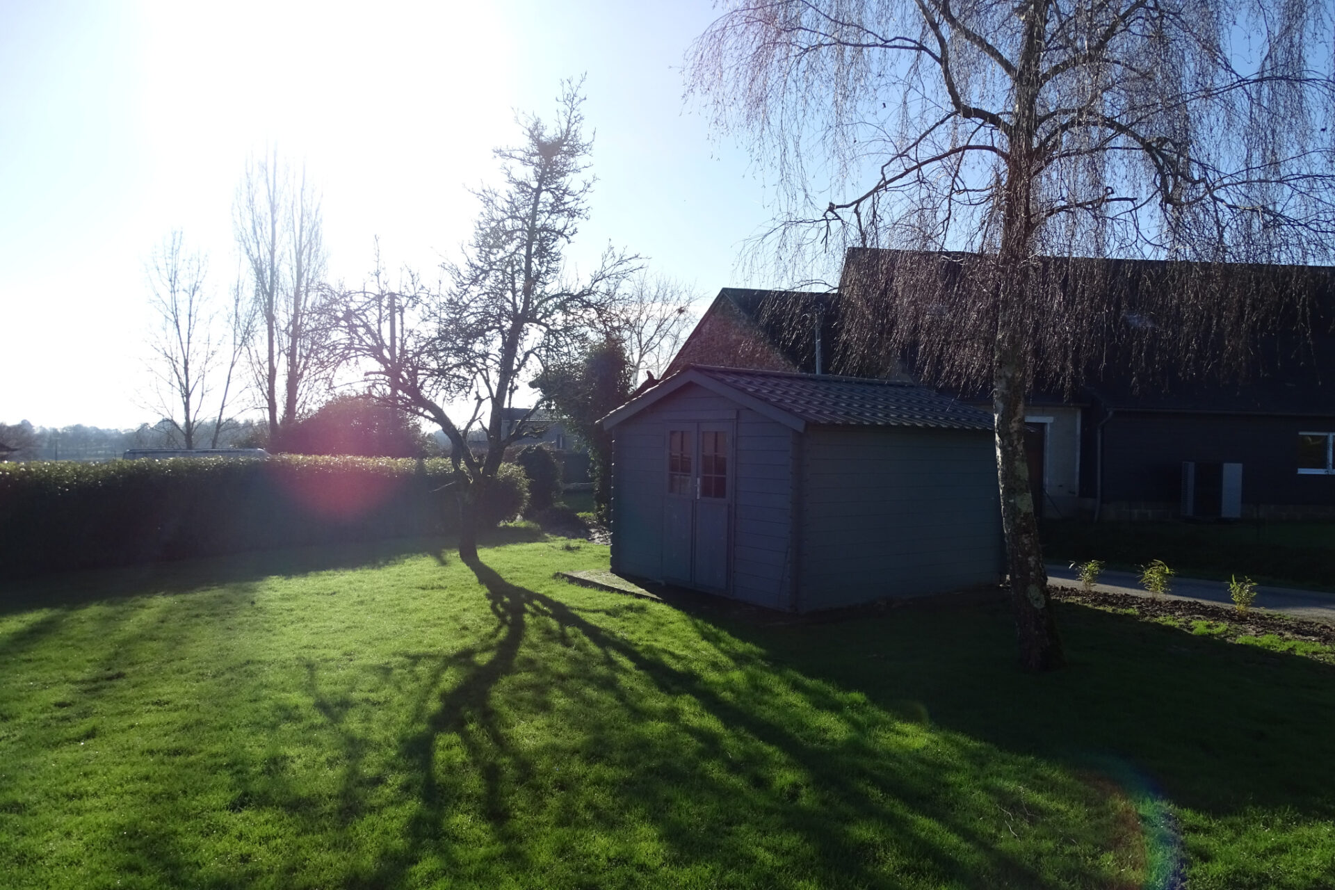 Le tout est implanté sur un terrain de 1026 m2, agrémenté d’une terrasse au Sud de 25 m2, d’un coin pelouse, d’un puit et d’un abri de jardin sur dalle béton de 9 m2.