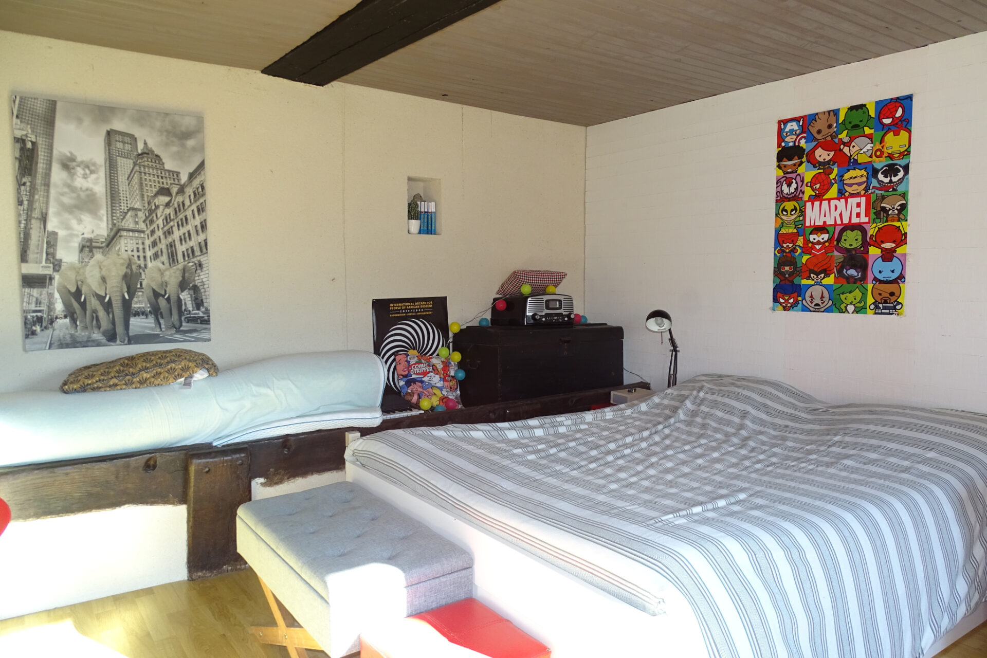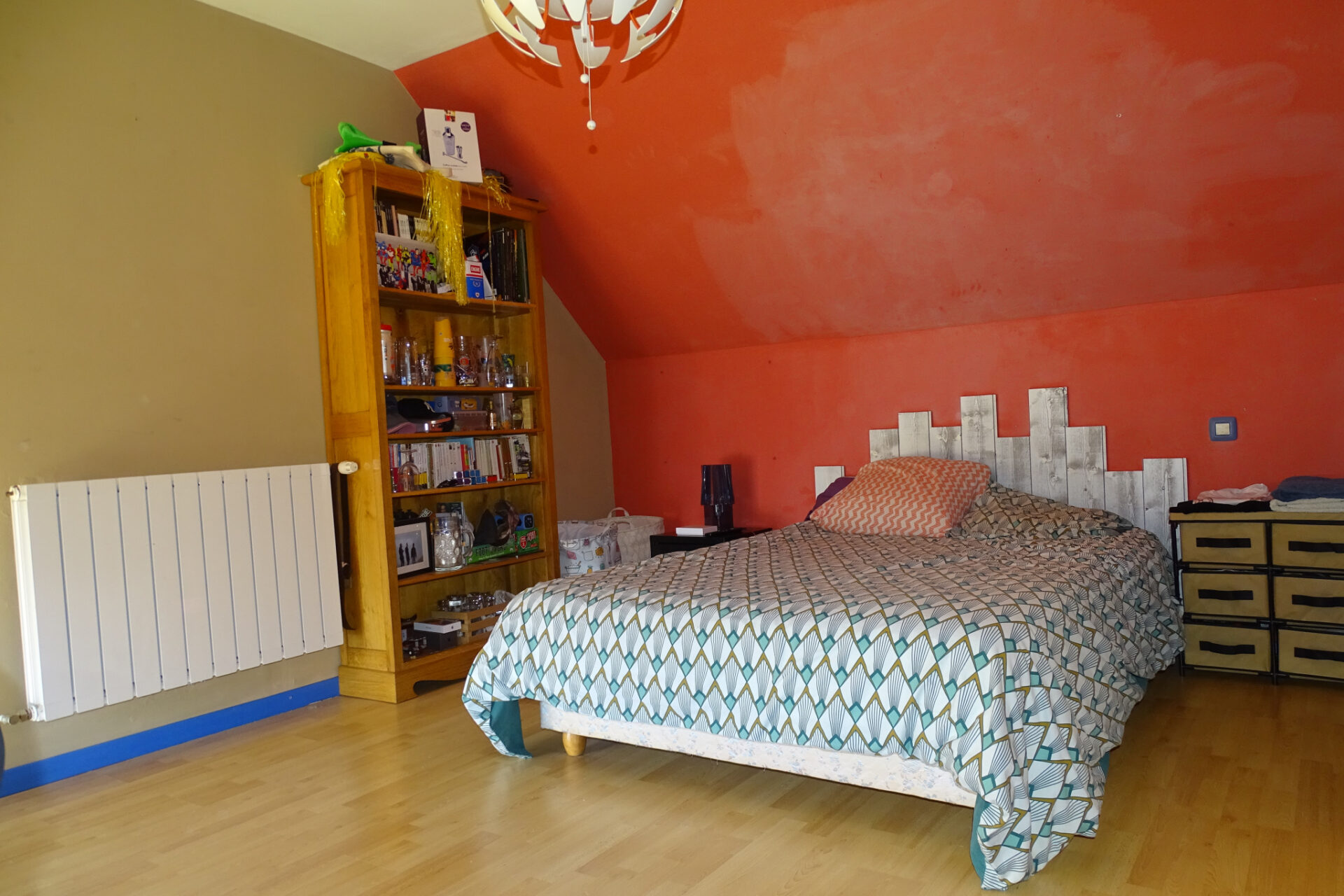 À l’étage, un palier de 8,5 m2 dessert deux chambres de 13,5 m2 chacune.