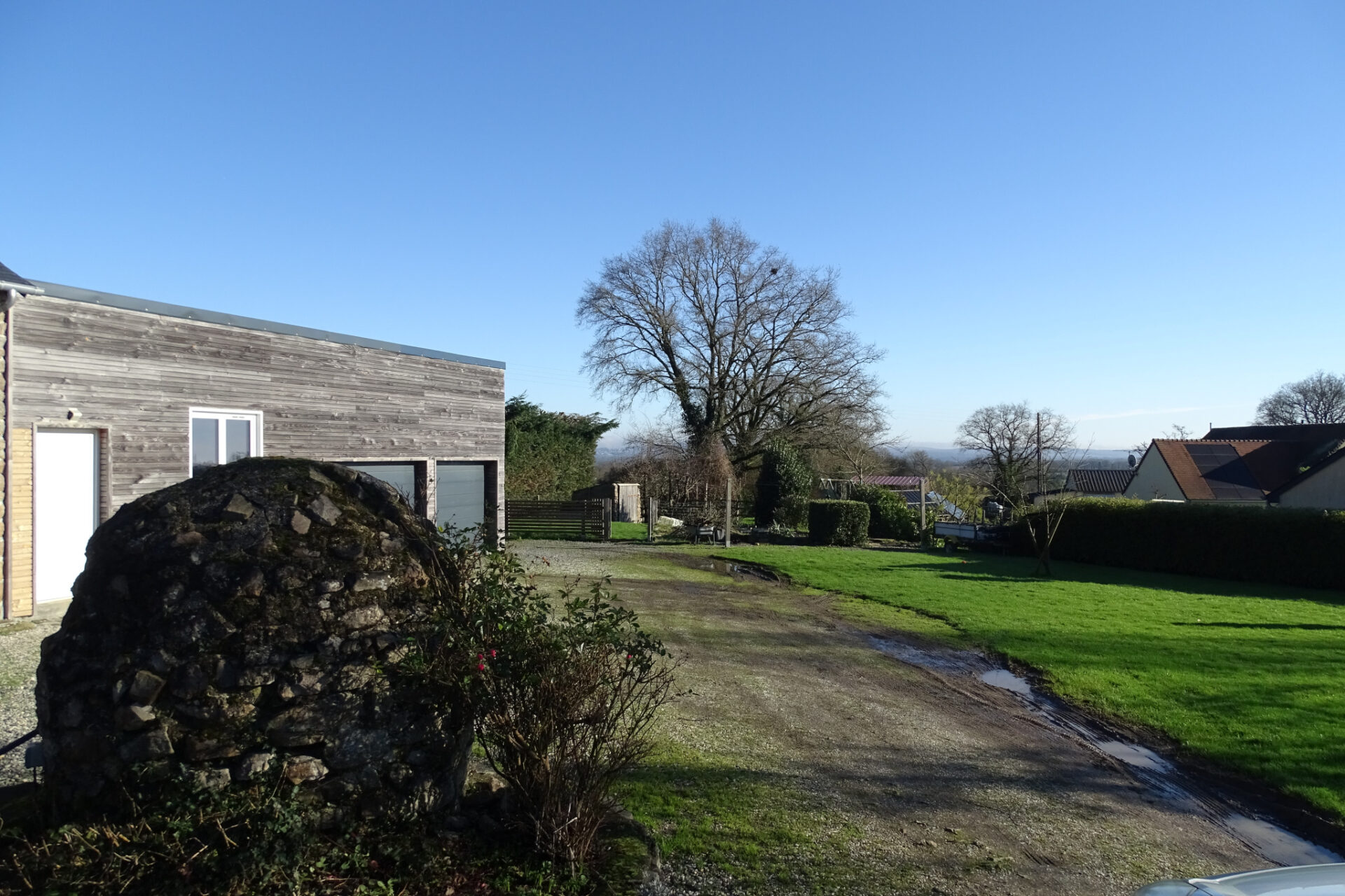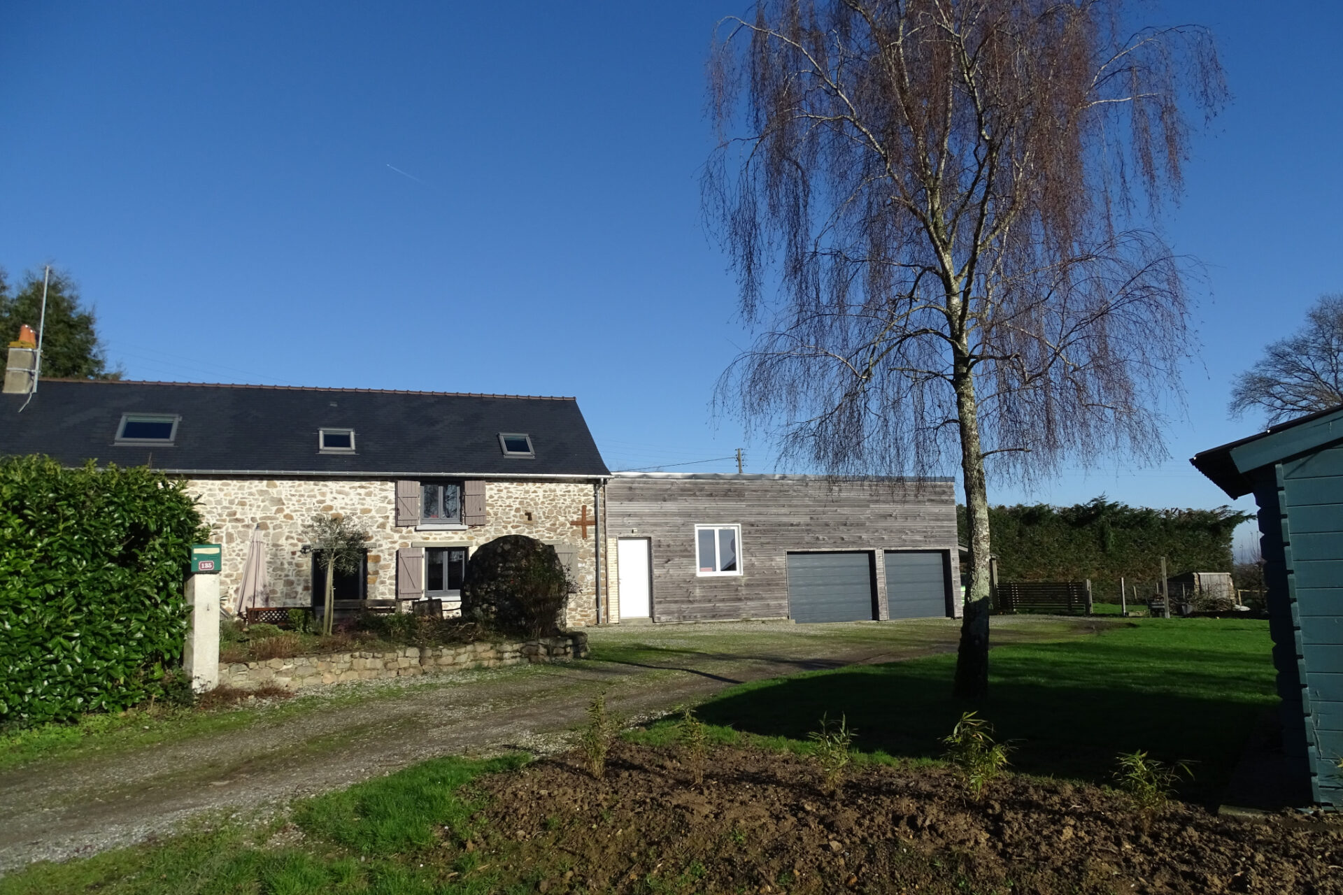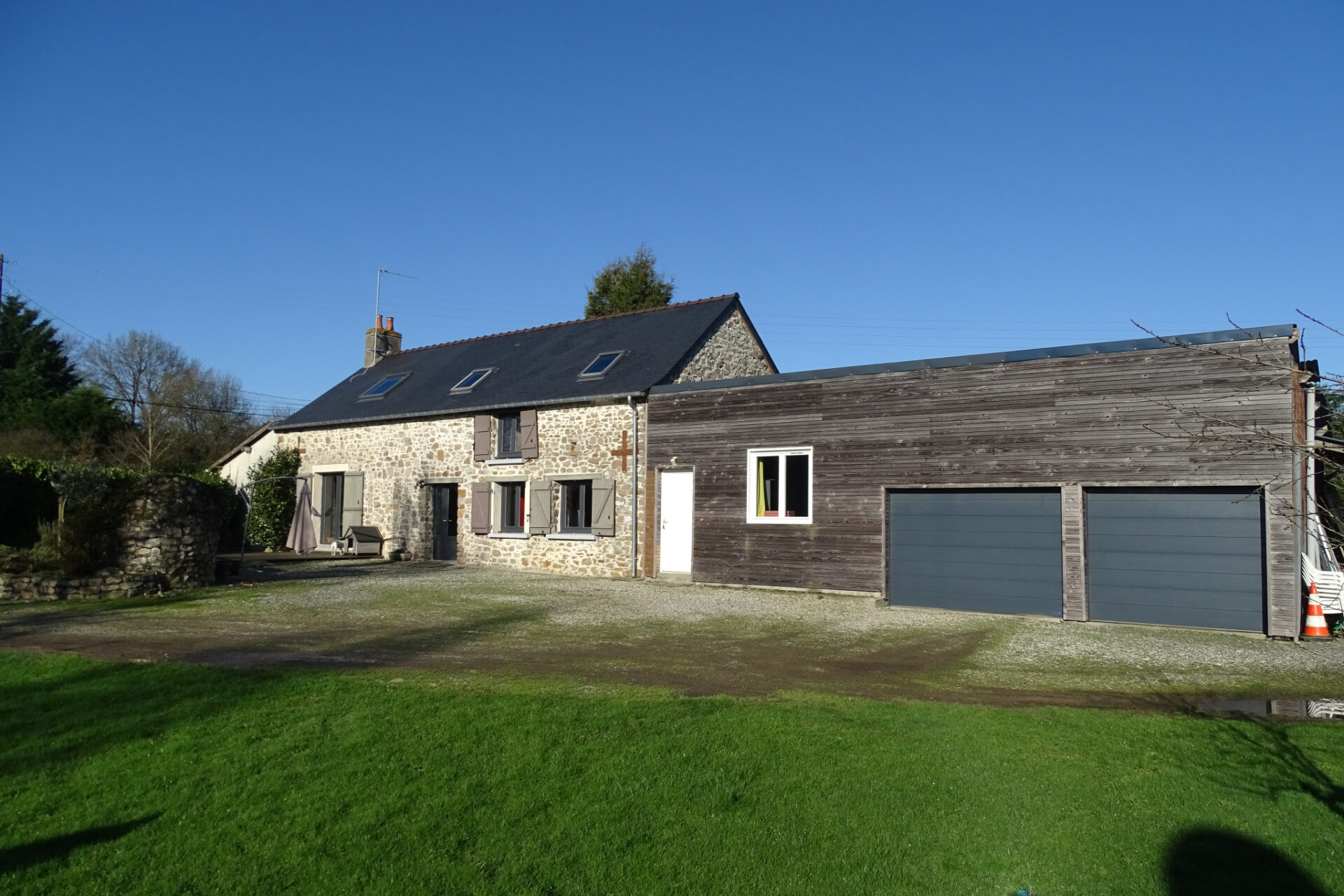 Le bien dispose également d’un vaste garage en tôles et bardage bois devant de 66 m2.