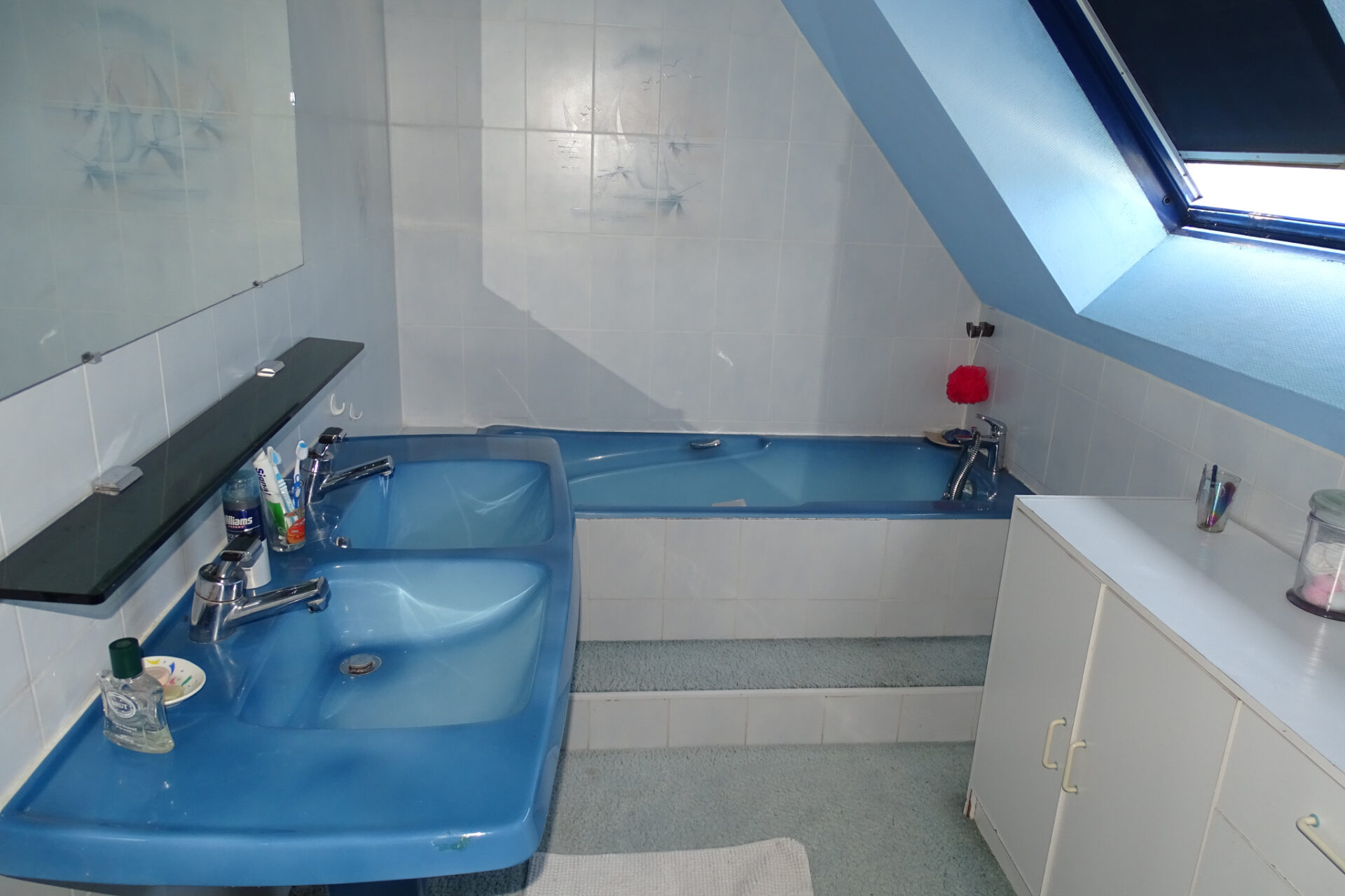À l’étage, une mezzanine (13.11 m2), trois chambres (8.48, 9.99 et 9.16 m2) et une salle de bain (5.68 m2) offrent un espace nuit confortable.