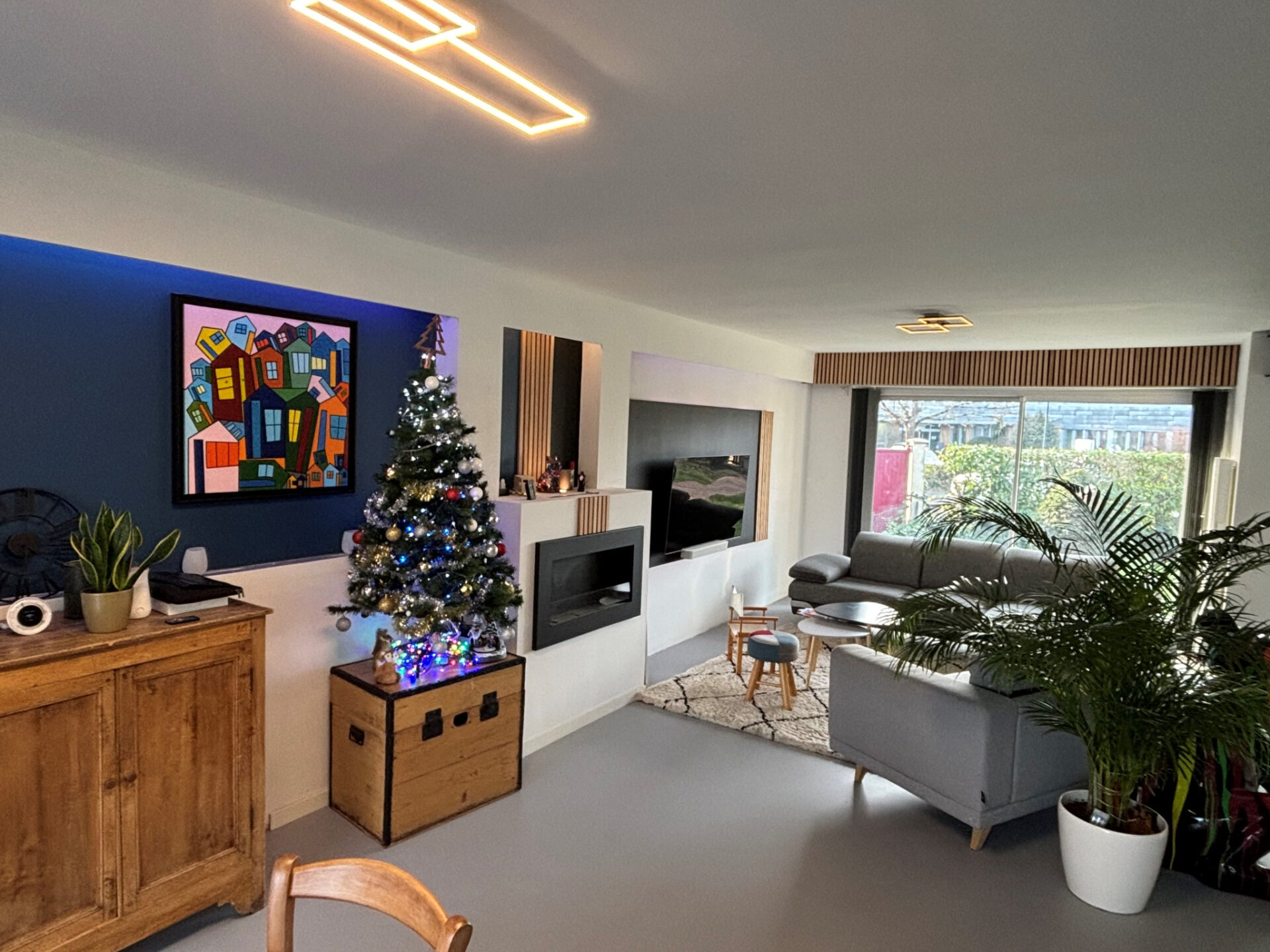 Grande pièce vie ouverte sur cuisine