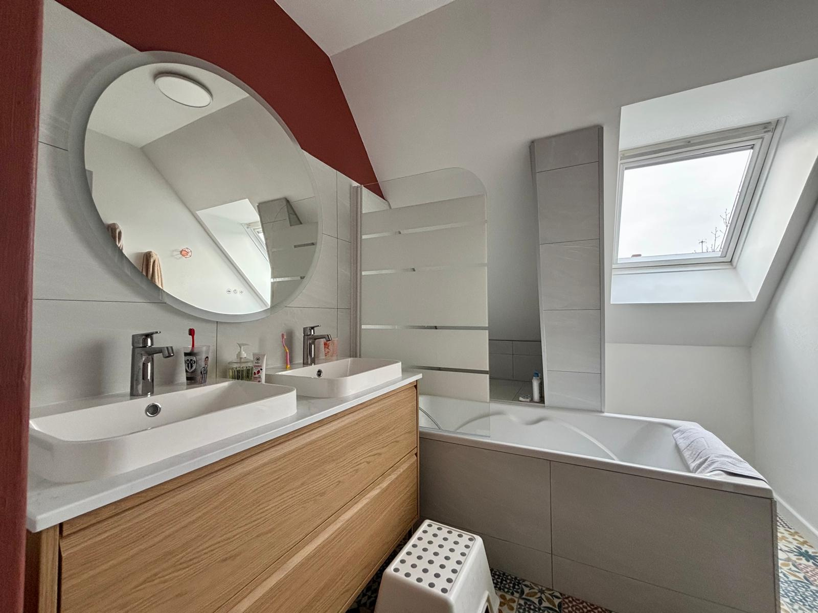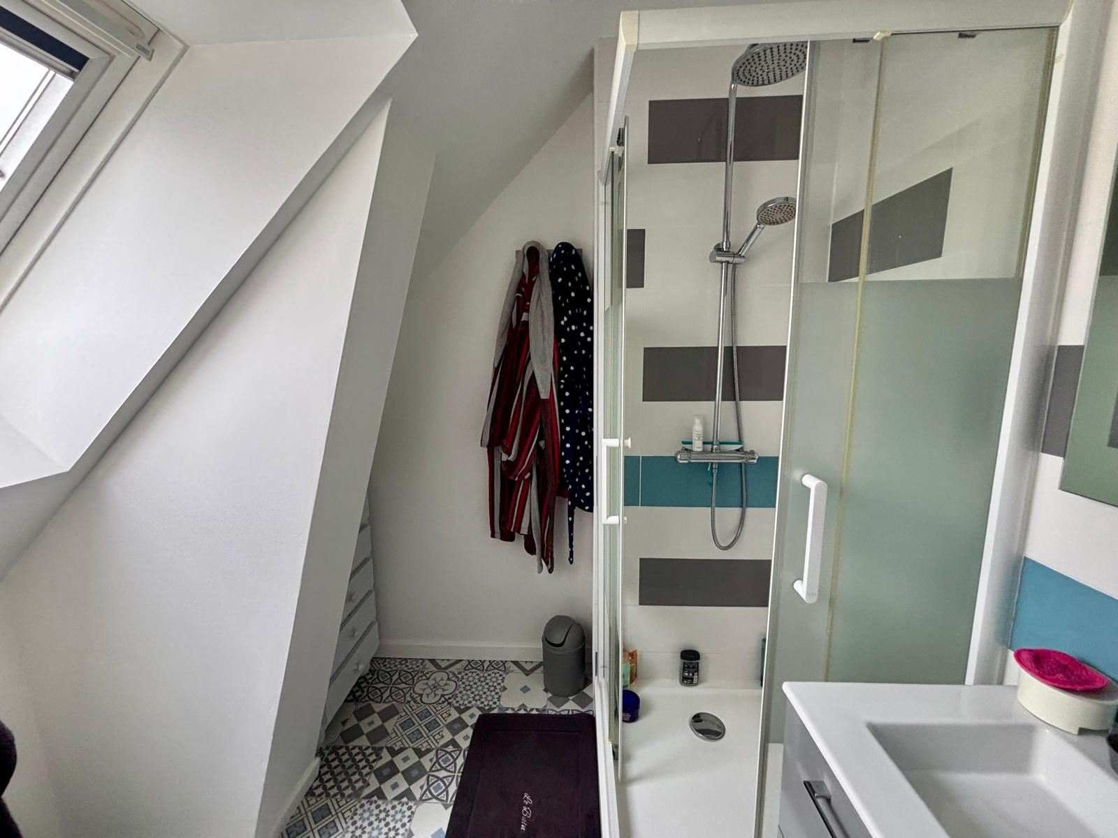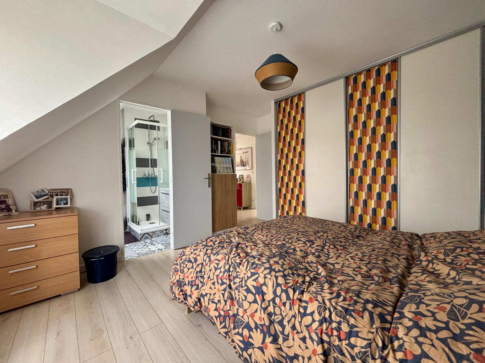 À l’étage, vous découvrirez quatre chambres, dont une suite parentale avec salle d’eau privative. Une salle de bains moderne et un WC séparé complètent cet espace nuit.