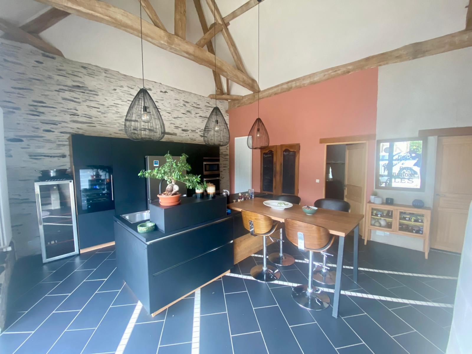 Rez-de-chaussée : Une entrée accueillante mène à une vaste pièce de vie regroupant séjour, salon et salle à manger, sublimée par une grande cheminée et un poêle à bois. Une cuisine spacieuse au style authentique et familial, deux chambres, une salle d’eau, un bureau et des WC complètent ce niveau.